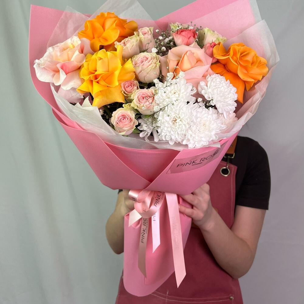 Невероятный букет скажет все за вас ❤️ чувственные оттенки роз, стойкая хризантема, фирменная открытка и доставка в срок 🥰