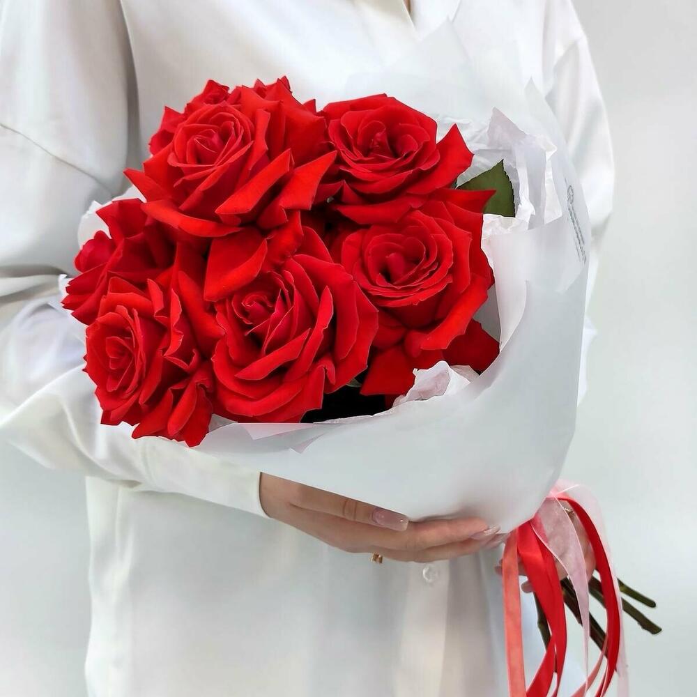 Алая роза в монобукете! Указаны примерные размеры, чтобы вы могли представить внешний вид и масштаб, но фактически размеры могут немного отличаться.