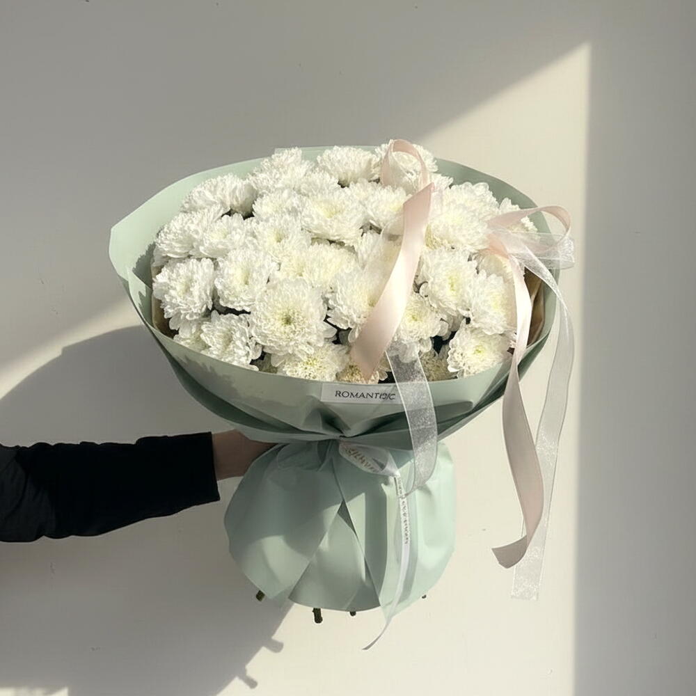 Захватывающие красотой, эти монобукеты из 15 веток хризантем станут идеальным подарком на любой праздник. Живые, сочные цветы, окутанные в этих букетах, воплощают в себе радость и нежность, подарив ваши эмоции тем, к кому они адресованы. Они радуют глаз и восхищают своим ярким, но нежным цветом. Этот букет станет изысканным дополнением к вашему подарку.
