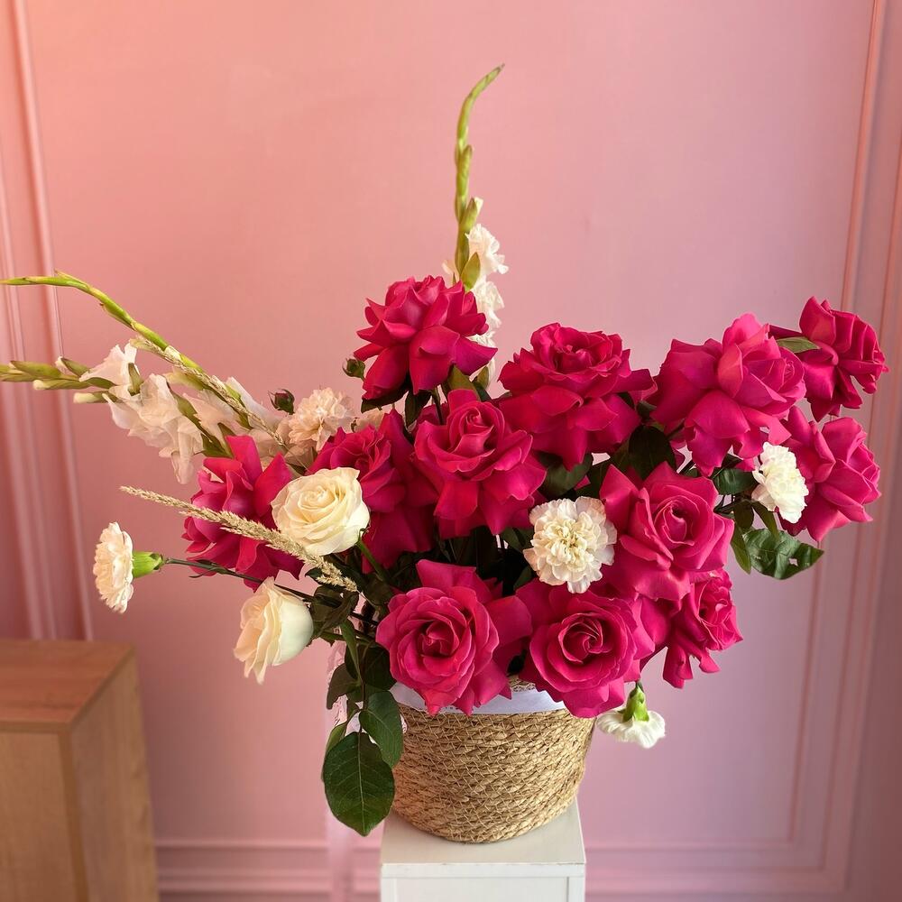 Раушан - 17 дана Бұта раушаны - 2 дана Гвоздика - 5 дана Гладиолус - 3 дана