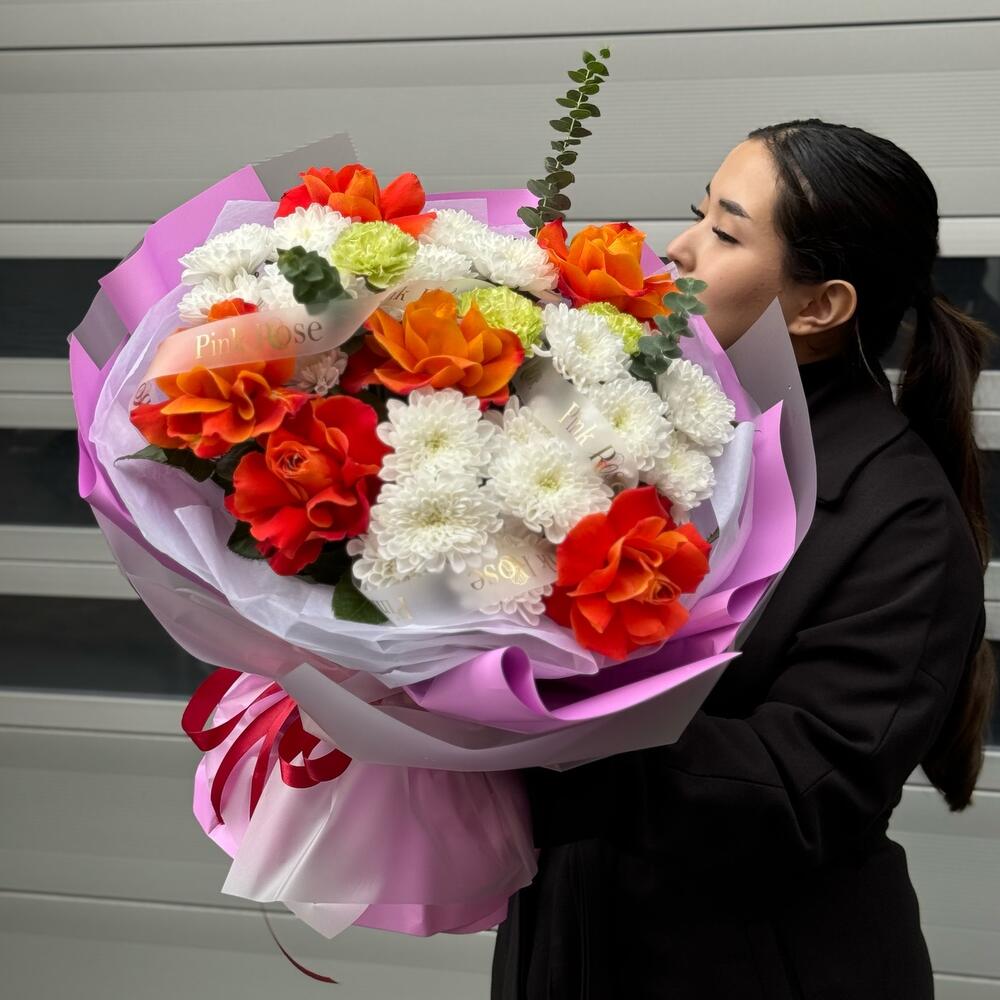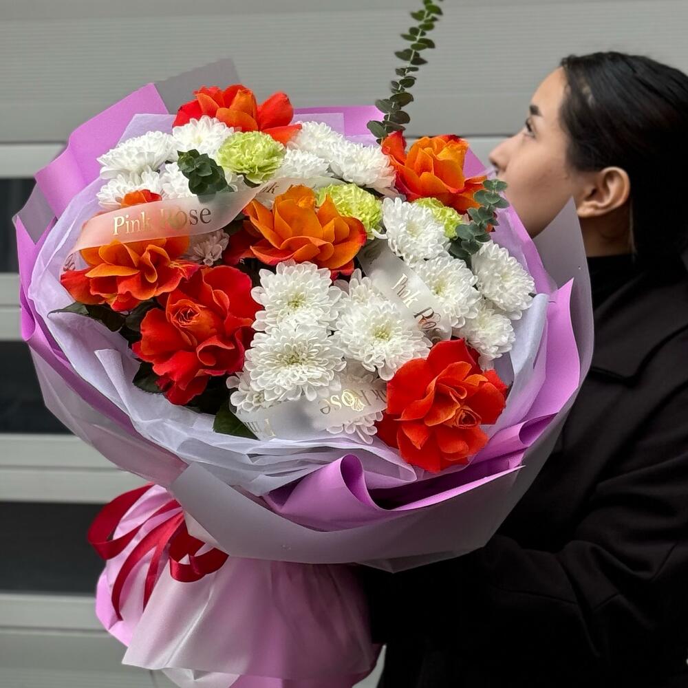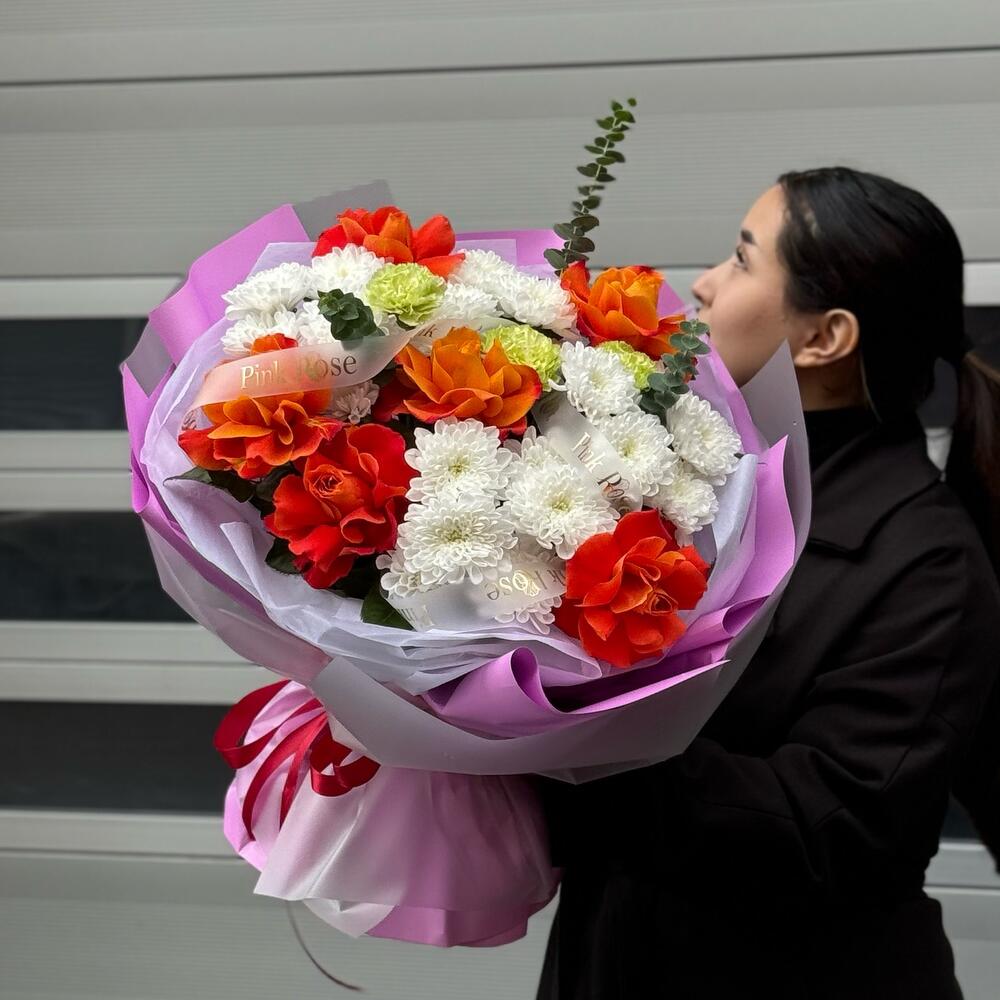 Хризантема бұтасы - 4 дана Эвкалипт - 3 дана Раушан - 6 дана Диантус - 3 дана