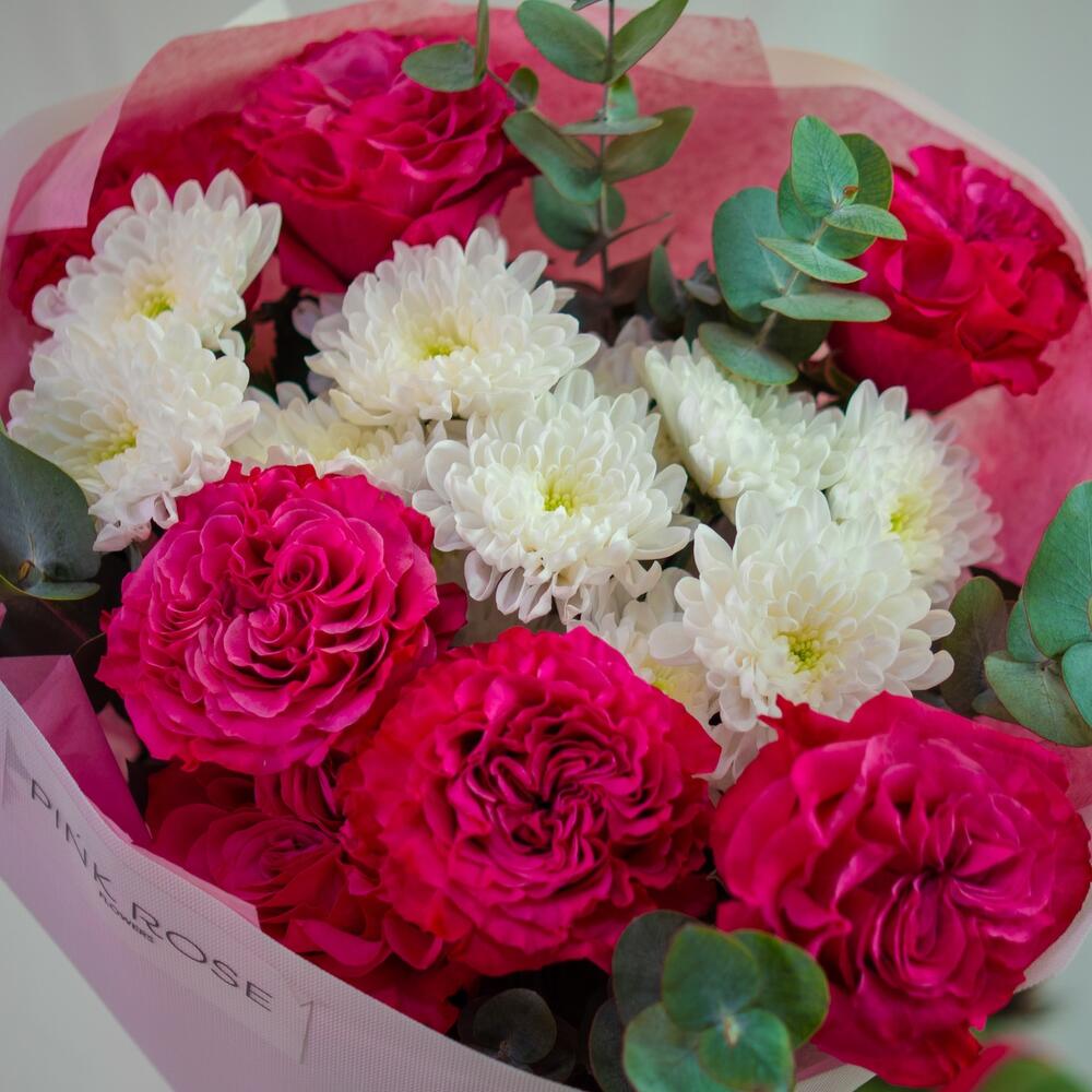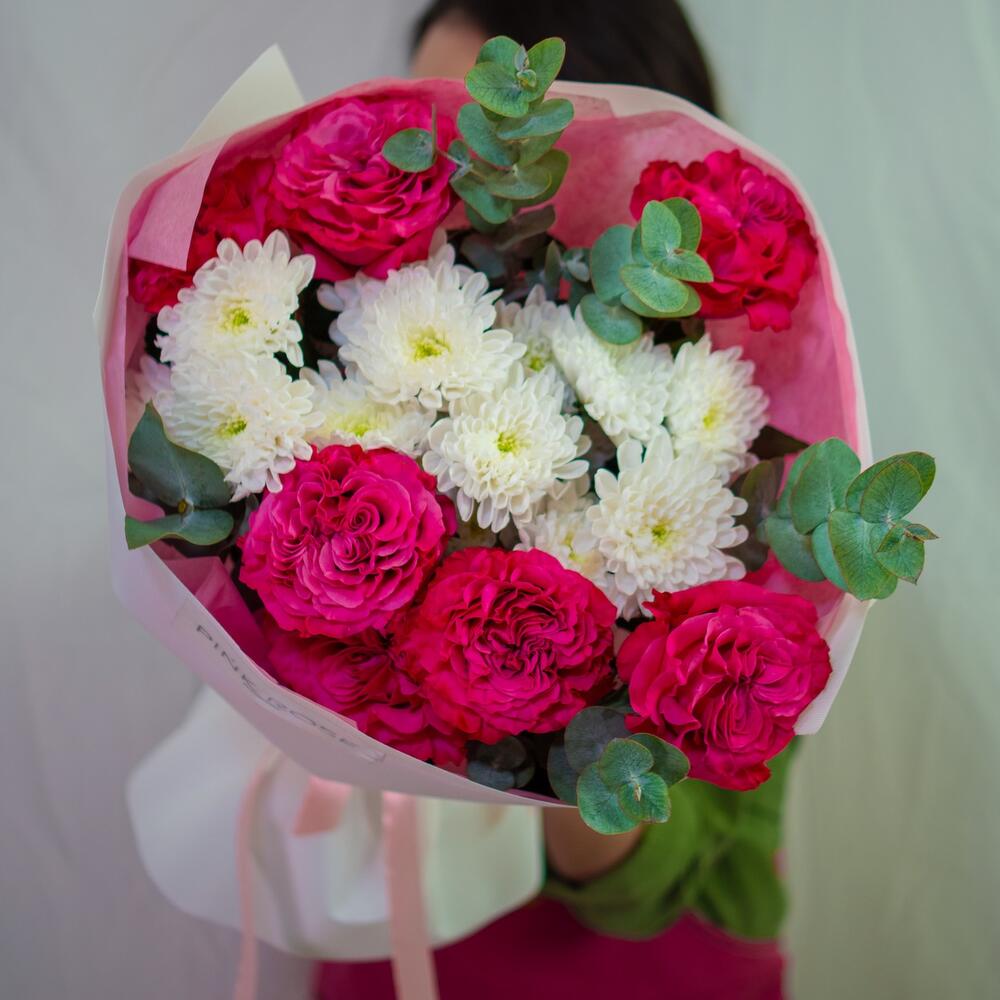 Хризантема бұтасы - 3 дана Эвкалипт - 5 дана Роза премиум - 7 дана