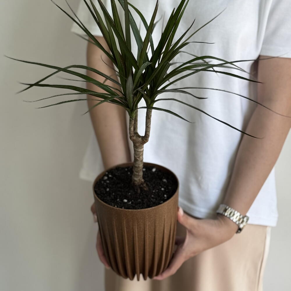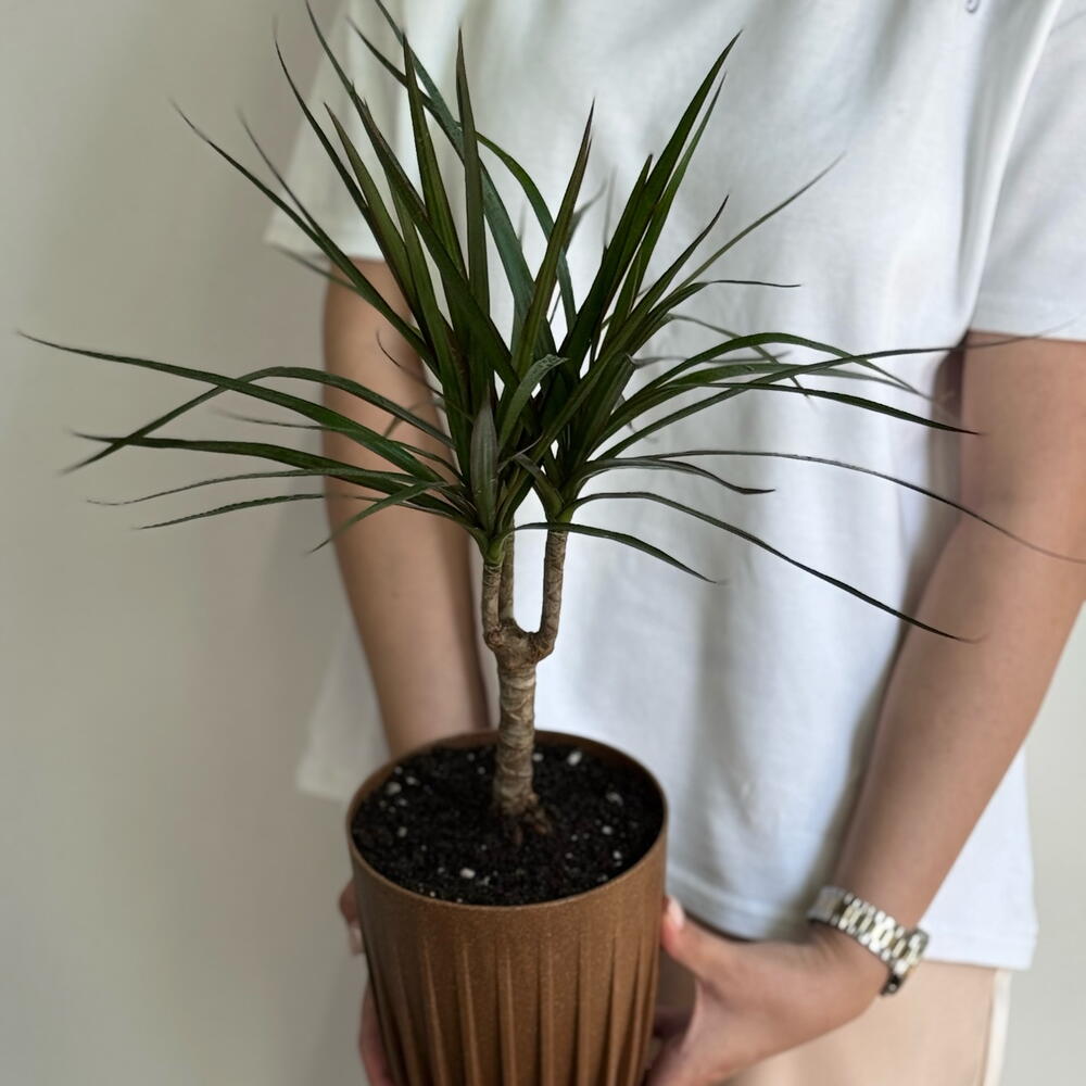 Драцена пересаженная в серое кашпо