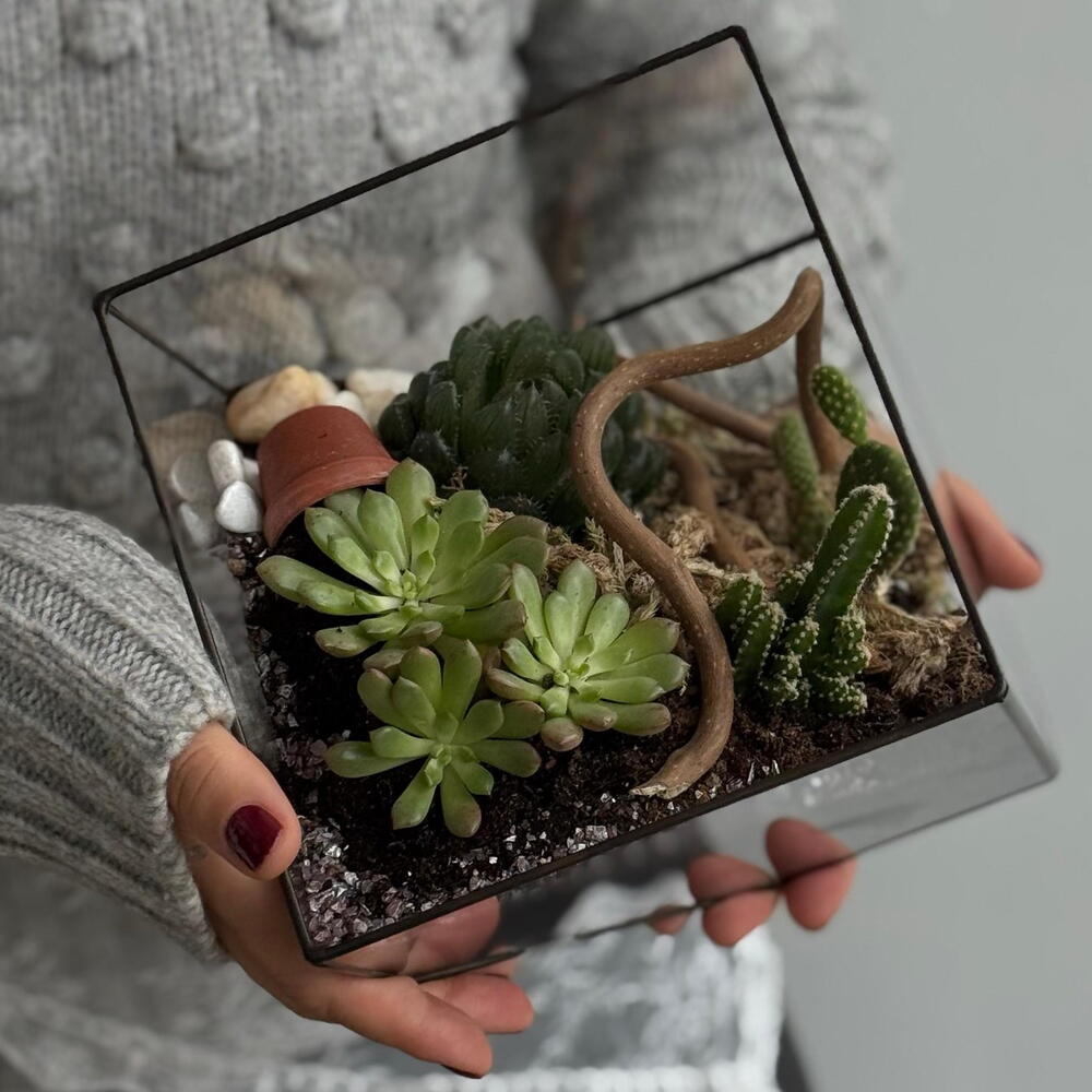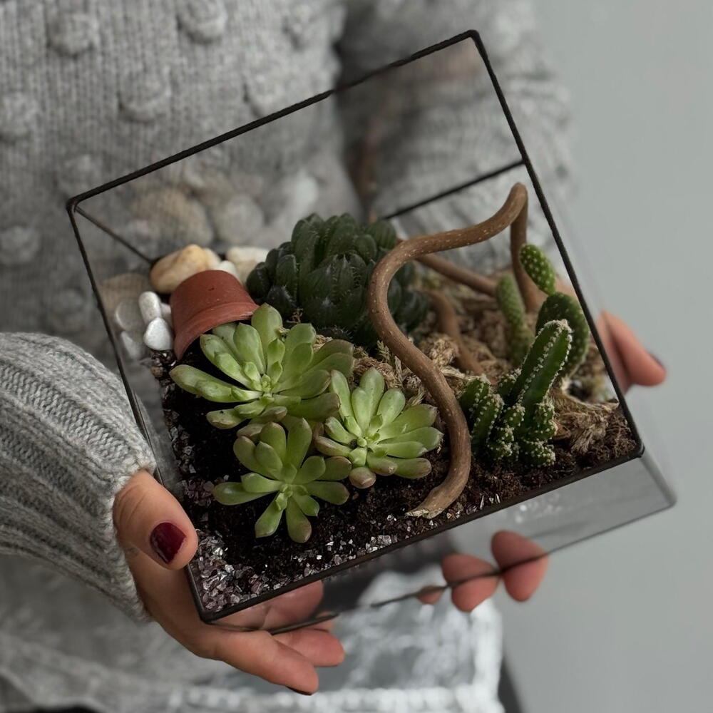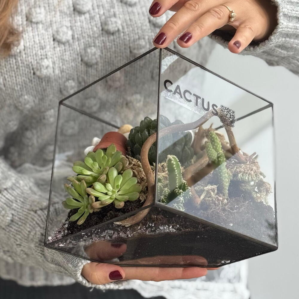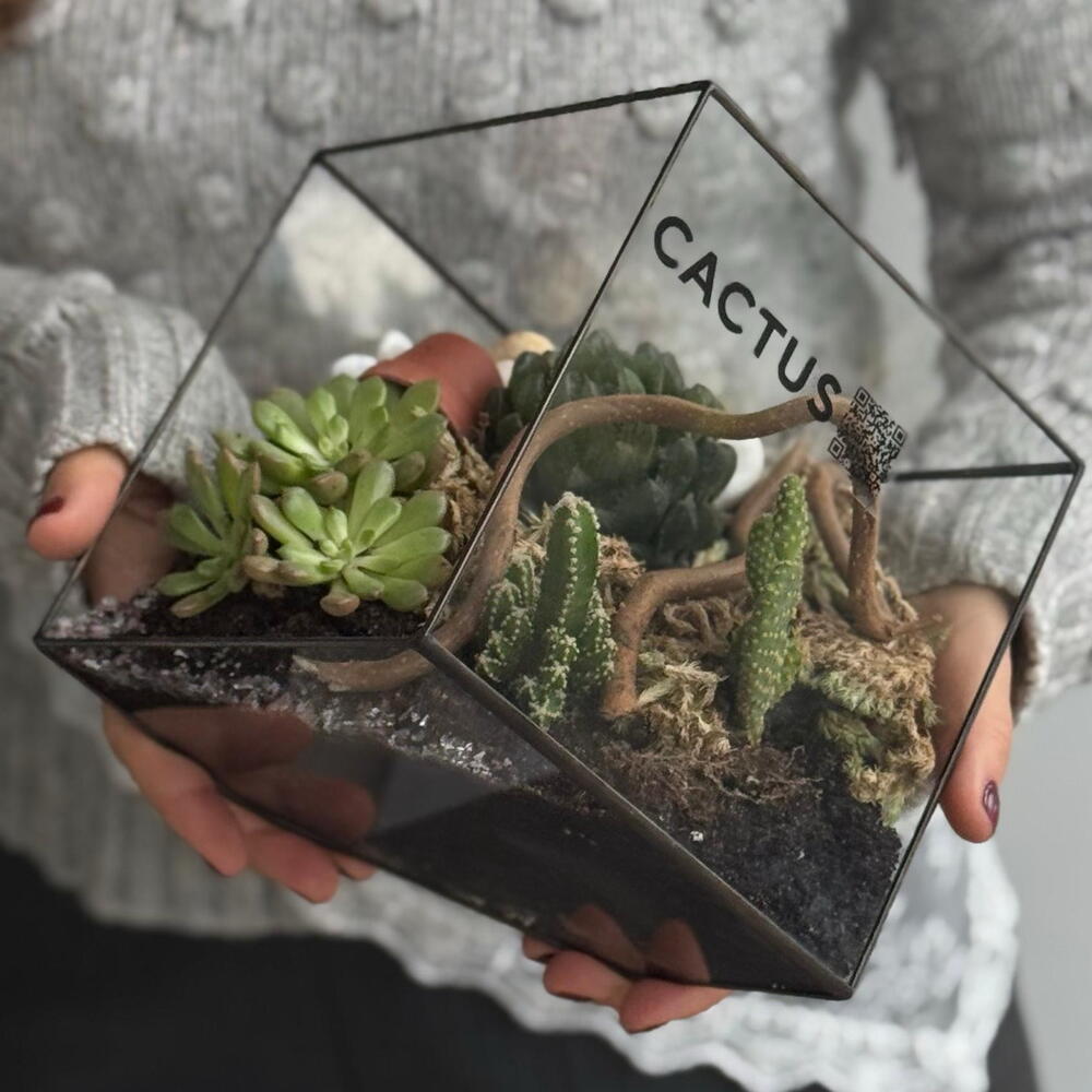 Флорариум Ромб с кактусом и суккулентами ( размер L)