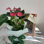 Розовый антуриум. Упаковка, пакет, открытка в подарок