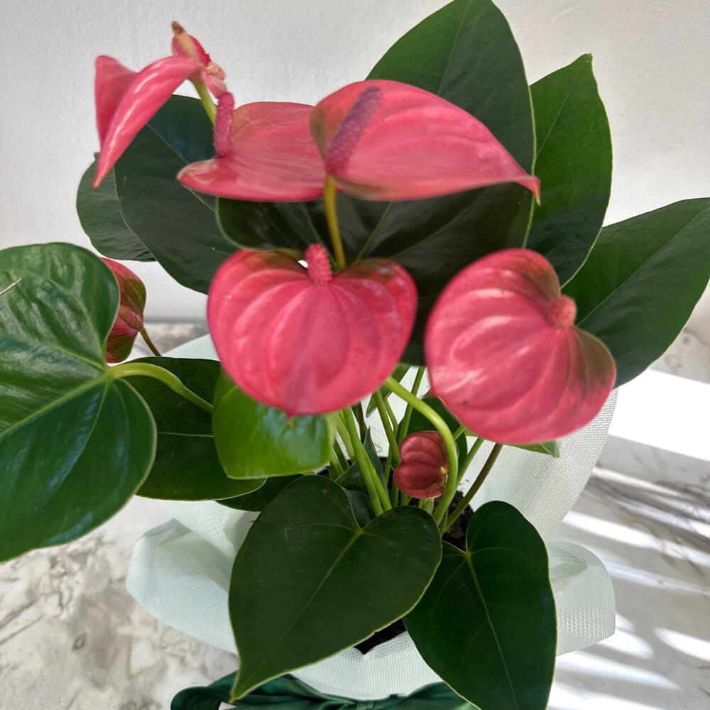 Розовый антуриум. Упаковка, пакет, открытка в подарок