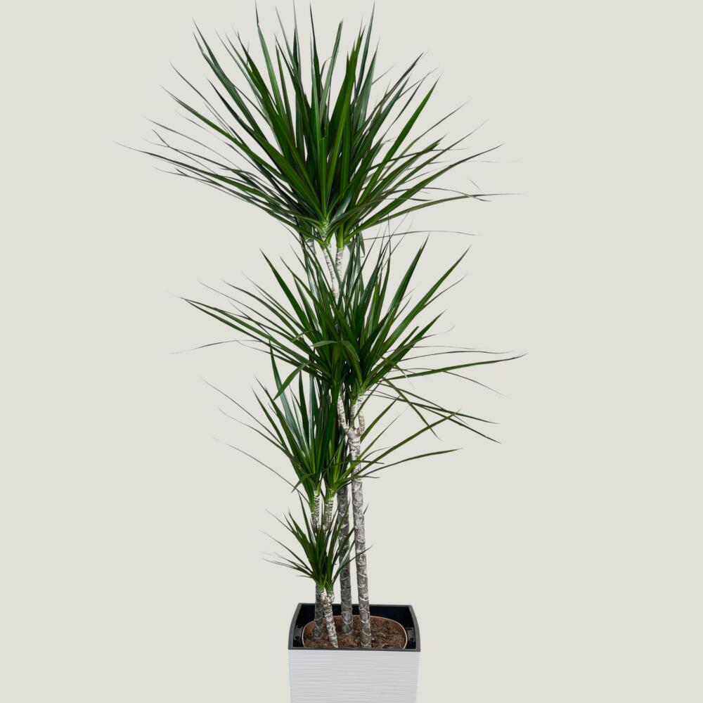 "Место и освещение: Лучше всего поместить горшок с драценой на расстоянии 1–2 м от восточных и западных окон, так как она любит яркое освещение, но не прямые палящие лучи полуденного солнца. Если слишком затенить растение, ее листья могут побледнеть. Впрочем, виды с темно-зелеными листьями в полутени чувствуют себя неплохо. Не забывайте периодически разворачивать драцену разными сторонами к свету, чтобы не вырастить однобокое растение. Температура: стандартная комнатная – +18 – +23℃. Так как растение происходит из краев с континентальным климатом, пальма драцена нормально реагирует на перепады температуры, и зимой некоторые виды драцен выдерживают температуру +12 – +13℃. Полив: Для нее важна золотая середина. Не нужно как пересушивать почву, так и заливать ее водой. Критерий – ком земли должен успеть между поливами ненадолго подсохнуть. Летом достаточно обильно поливать 2 раза в неделю, зимой при низкой температуре снизить до 1 раза в 10-12 дней."