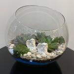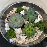Уход за флорариумом: Суккулентам требуется много света, но в жаркий летний период их нужно убрать с прямых солнечных лучей. В летний период флорариум поливается раз в одну-две недели. В остальное время поливается раз в три недели. Полив производится под каждый цветок шприцом или ложкой, чтобы не испортить дизайн флорариума. ● В случае утоньшения и вялости листиков увеличьте полив. Осторожно: в случае перелива суккуленты могут гнить.