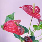 Антуриум — эффектное тропическое растение с глянцевыми сердцевидными листьями и яркими покрывалами красных, розовых, белых или бордовых оттенков. Символизирует страсть и благополучие.