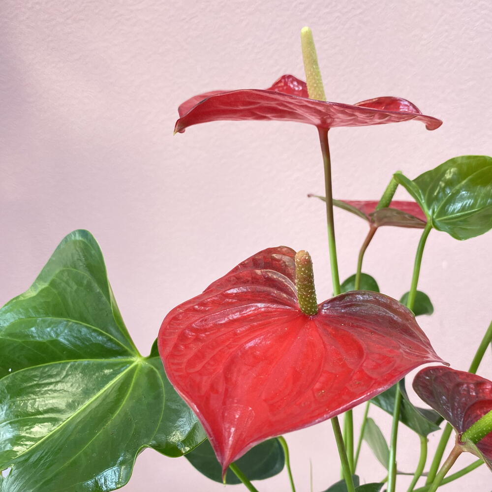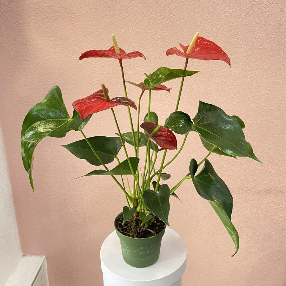 Антуриум — эффектное тропическое растение с глянцевыми сердцевидными листьями и яркими покрывалами красных, розовых, белых или бордовых оттенков. Символизирует страсть и благополучие.