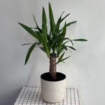 Юкка — это вечнозеленое растение семейства Спаржевые, известное своими жесткими, мечевидными листьями, собранными в розетки на верхушке ствола, которое выглядит как миниатюрная пальма и ценится за декоративность и неприхотливость, а цветет крупными, колокольчатыми белыми цветками на высоком цветоносе, образуя эффектное соцветие. Растение родом из Северной и Центральной Америки, накапливает воду в стволе, устойчиво к засухе и предпочитает много света, а его корни содержат полезные сапонины.