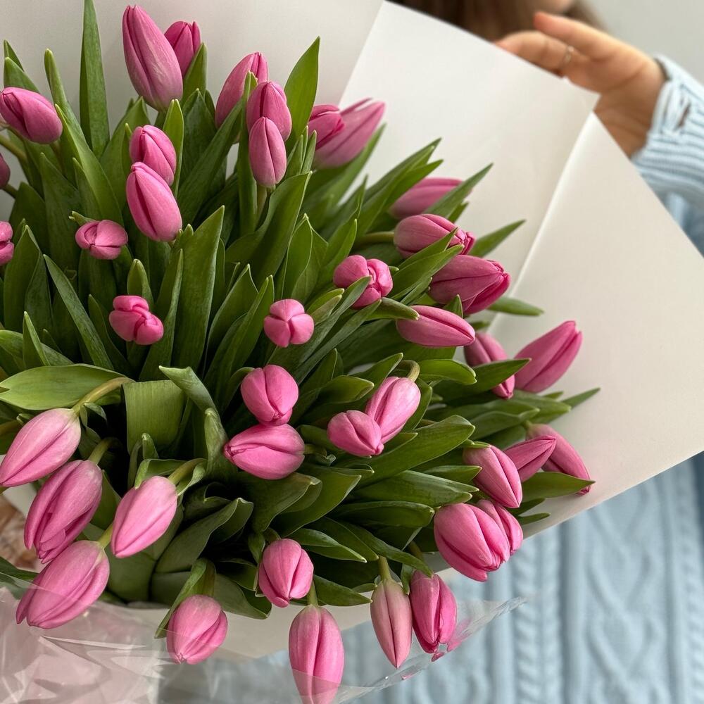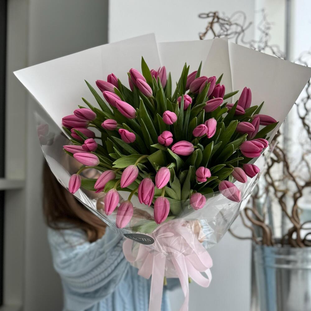 Моно букет из тюльпанов PINK ( 51 шт)