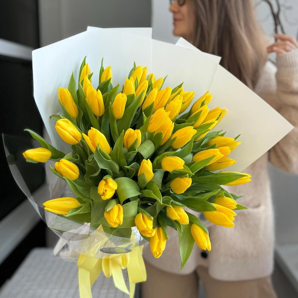 Моно букет из тюльпанов YELLOW (51шт)