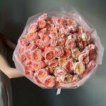 Лента атласная - 1 шт. Кустовая пионовидная роза - 35 шт. Упаковка дизайнерская - 3 шт. Кризал (подкормка) - 1 шт.