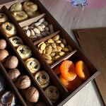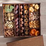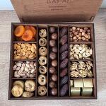 Фисташка - 100 гр. Грецкий орех - 100 гр. Миндаль - 100 гр. Фундук - 100 гр. Курага - 200 гр. Инжир сушеный - 100 гр. дыня сушеная - 7 шт. макадамия в скорлупе - 200 гр. финики королевские - 200 гр. птичье молоко - 5 шт.