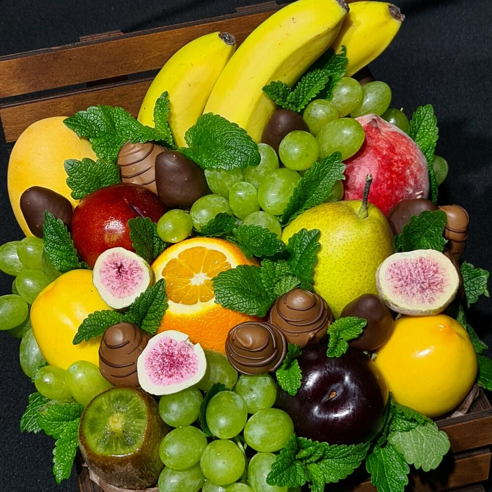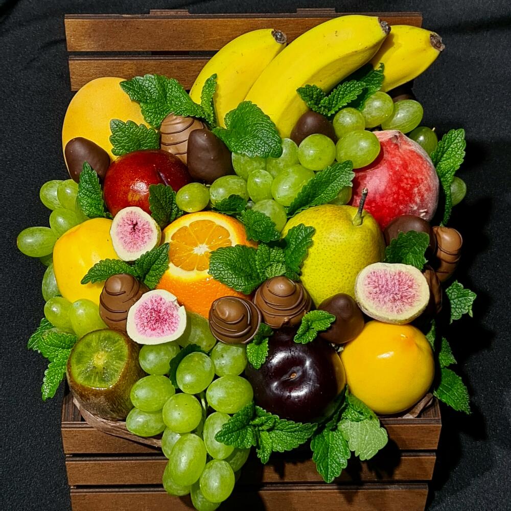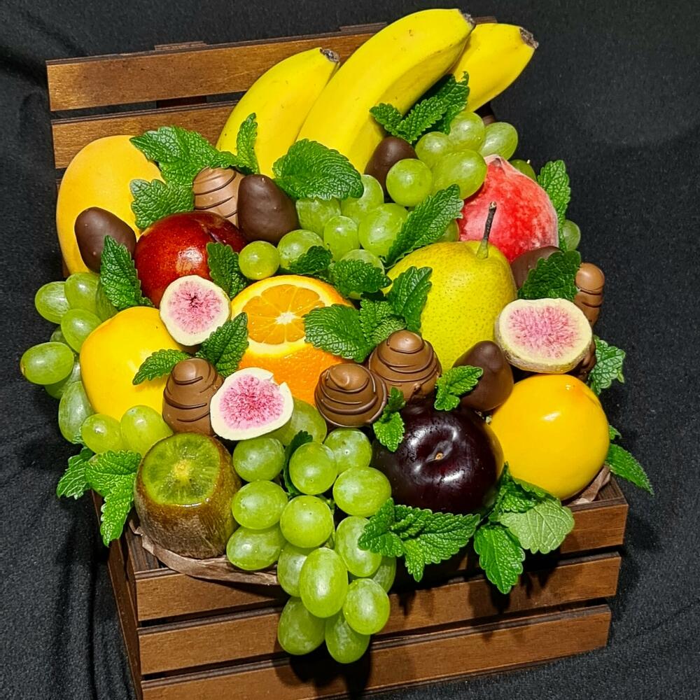 Банан - 3 шт. Киви - 1 шт. Апельсин - 1 шт. Груша - 1 шт. Персик - 3 шт. Слива - 2 шт. Ящик деревянный - 1 шт. манго - 1 шт. Открыточка с вашими пожеланиями - 1 шт. Абрикос - 2 шт. Виноград гроздь - 1 шт. Клубника в шоколаде callebaut (бельгия) - 12 шт. зелень декоративная - 1 шт. инжир сублимированный - 3 шт.