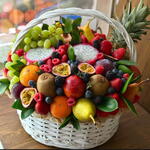Клубника - 25 шт. Ананас - 1 шт. Виноград - 2 шт. Гранат - 1 шт. Киви - 4 шт. Мандарин - 4 шт. Малина - 150 гр. Груша - 4 шт. Персик - 2 шт. Слива - 5 шт. Голубика - 150 гр. Маракуйя - 3 шт. Драгон фрукт - 1 шт. ежемалина - 150 гр.