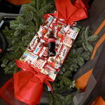 Kinder сюрприз - 3 шт. Kinder chocolate - 2 шт. Kit kat - 1 шт. choco pie - 2 шт. skittles (пачка) - 1 шт. country kinder - 2 шт. delice киндер - 2 шт. byeno - 2 шт. кола в стекле - 1 шт.