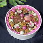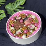 Кешью - 63 гр. Мед суфле - 1 шт. Фундук - 102 гр. Шоколадная открытка - 1 шт. тыквенные семечки - 15 гр. рисовые шарики - 10 гр. миндаль чищенный - 100 гр. конфеты стильные штучки - 3 шт. драже шоколадные - 45 гр. грецкий чищенный - 72 гр.