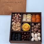 Инжир - 100 гр. Миндаль - 100 гр. Фундук - 100 гр. Курага - 100 гр. Чернослив - 100 гр. Финики - 100 гр. пекан - 100 гр. макадамия - 100 гр. манго роза - 1 шт.