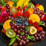 Клубника - 100 гр. Банан - 3 шт. Киви - 2 шт. Персик - 4 шт. Слива - 2 шт. Ящик деревянный - 1 шт. манго - 1 шт. Открыточка с вашими пожеланиями - 1 шт. Маракуйя - 2 шт. Питахайя - 1 шт. Виноград гроздь - 1 шт. Голубика 100гр - 1 шт. зелень декоративная - 1 шт. мандарины сезонные - 2 шт.