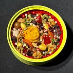 Кешью - 86 гр. Мармелад - 38 гр. Миндаль - 50 гр. Фундук - 70 гр. Клюква - 8 гр. воздушный рис - 23 гр. дроже шоколадное - 16 гр. пекан - 46 гр. макадамия - 34 гр. грецкий орех в скорлупе - 20 гр. финики королевские - 31 гр. урюк с косточкой - 26 гр. тыквенные семечки - 10 гр. грецкий чищенный - 42 гр.