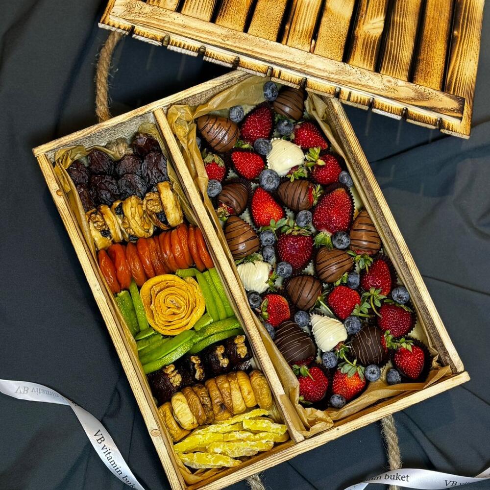 Ящик микс с сухофруктами и клубникой в бельгийском шоколаде