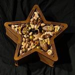 Фисташка - 40 гр. Кешью - 30 гр. Мед суфле - 1 шт. Фундук - 100 гр. пекан - 100 гр. макадамия орех - 100 гр. грецкий орех в скорлупе - 70 гр. шоколадное драже - 40 гр. грецкий орех чищенный - 10 гр. миндаль неочищенный - 70 гр. финики королевские в бельгийском шоколаде - 3 шт.