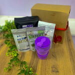Подарочный набор с тремя видами матчи — зелёной, розовой и голубой. В комплект также входит складная кружка и зерновой кофе 250 г. Стильное сочетание для ценителей кофе и матчи.