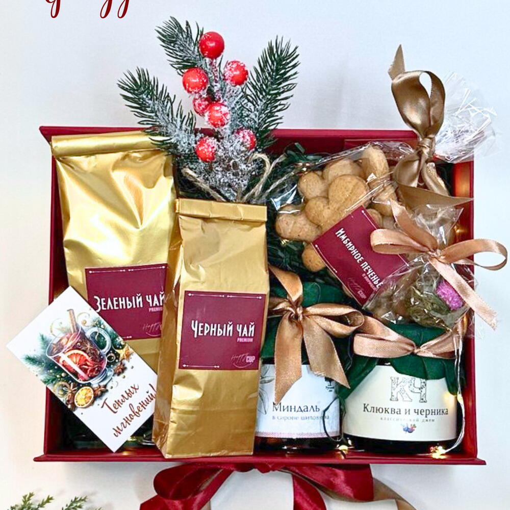 Не хотите тратить время на поиски идеального подарка? Мы уже всё продумали за вас! Представляем набор Праздничная классика — всё, что нужно, чтобы подарить близким или коллегам атмосферу уюта и праздничного настроения! Что внутри: Чай Рождественский глинтвейн — согреет в зимние вечера и создаст ощущение уюта и тепла. Чай 1001 Ночь — нежный аромат, который подарит атмосферу покоя и уединения. Вязанный чай Манго — экзотичный вкус, который зарядит энергией и сделает день ярче. Имбирное печенье — хрустящее и ароматное, идеальное для чашки чая. Джем клюква-черника — натуральная сладость для утренних тостов и десертов. Миндаль в сиропе из шиповника — необычное сочетание для настоящих гурманов. Всё это упаковано в стильную коробку с магнитной застежкой и украшено гирляндой, веточкой и открыткой. Подарок готов — вам остаётся лишь вручить его! Набор Праздничная классика — это идеальный способ подарить близким и коллегам тепло, уют и праздничный дух, не тратя времени на поиски. Просто откройте коробку и наслаждайтесь моментом!